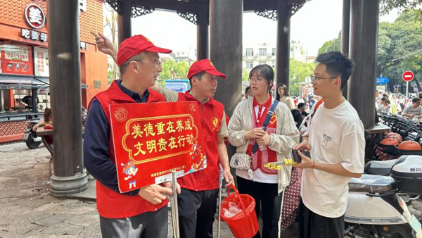 此次主题活动范围覆盖古城文脉实践区全域,包括西街、花巷、文化宫、府文庙等4个文明实践点,笋江公园、江南公园2个换乘中心,以及新华路、百源路、中山公园3个集散中心。在三朝巷等人流密集区域,“邻里亲·厝边情”文明实践志愿服务队员们手持“美德重在养成 文明贵在行动”等标语牌,通过弯腰捡拾垃圾、耐心解答疑问等实际行动让八方游客感受到千年古城的魅力。在中山路附近,中保济困公益慈善中心志愿者们则走进店铺,向商户宣传文明经商、诚信经营的理念。同时,对出店经营、车辆乱停放等不文明现象进行劝导护航古城文旅,共同营造安全、有序、温馨的假日旅游环境。