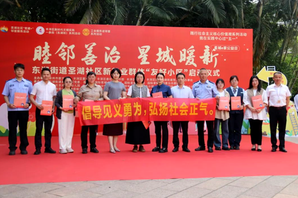 为弘扬劳动精神、丰富群众文化生活,4月30日,泉州市委文明办、丰泽区委宣传部、丰泽区总工会等主办单位在圣湖社区国际星城小区,开展“睦邻善治 星城暖新”圣湖社区就业群体友好小区启动仪式暨我在新时代文明实践中心过“五一”活动。