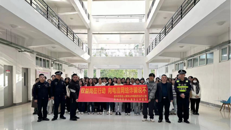 为贯彻落实上级部门关于“权益岗在行动:向电信网络诈骗说不”专项活动的部署要求,日前,市劳动人事争议仲裁办、市劳动人事争议仲裁院联合后渚海防派出所走进泉州师范学院,开展求职与就业权益维护宣讲活动,进一步增强在校大学生劳动就业法律风险防范意识。
