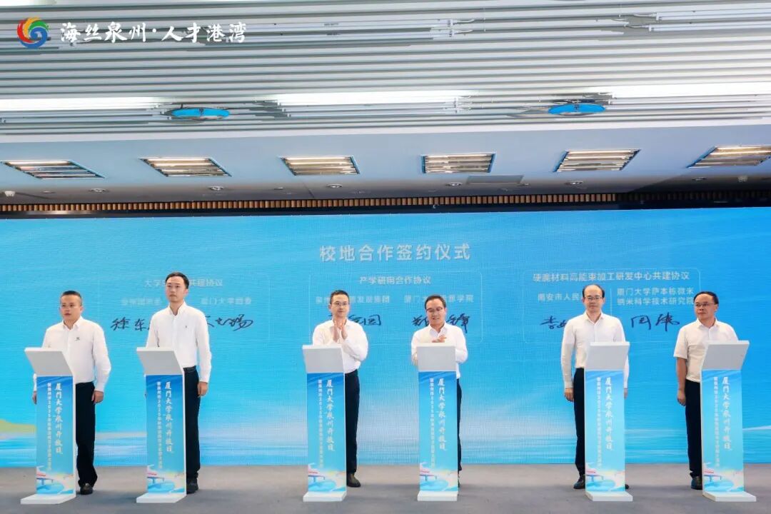 活动中,泉州与厦门大学就开展校地合作进行深入交流。张宗益表示,感谢泉州长期以来对厦门大学各项事业发展的关心与支持。面向未来,希望双方进一步创新合作机制,推动厦大理科、工科的师生团队与泉州企业深度对接,通过共建实践基地、开展科研攻关,将学校的智力资源持续输送到产业一线;同时积极引入企业专家参与人才培养,构建起从学校到企业、再从企业回校园的双向赋能通道,共同破解关键技术难题,为泉州高质量发展注入持续的创新动能。